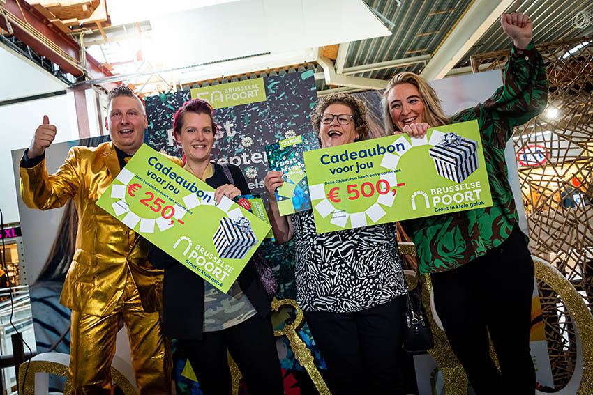 22 september – Gisteren bestond Winkelcentrum Brusselse Poort precies 50 jaar. Onder het genot van een glas champagne en een stukje Limburgse vlaai luisterden de 75 aanwezigen naar de prachtige woorden van Richard Reulink, die sprak namens de eigenaar van het Winkelcentrum. Voorzitter van de winkeliersvereniging Astrid van den Wijngaard haalde oude herinneringen op en daarna ging men over tot het officiële moment. Alle 30 prijswinnaars ontvingen een prachtige prijs. De grootste gelukvogels waren Desiree en Daniella die er respectievelijk vandoor gingen met een waardecheque van € 250,- en € 500,-. De komende dagen worden er gelukskalenders uitgedeeld in de winkels.