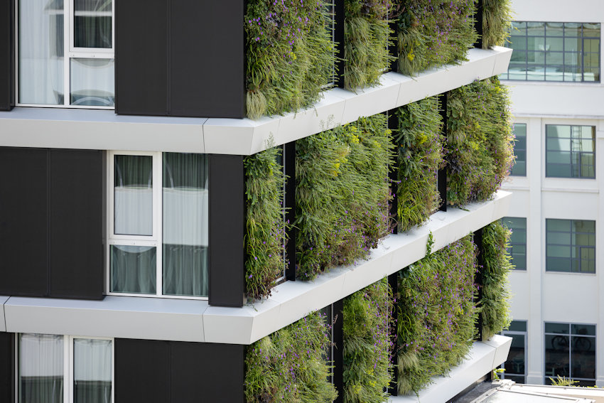 - Fassat Geveltechniek met het Beyond Wall System: De losmaakbare en herbruikbare steenstrips van het Beyond Wall System zijn vervaardigd uit gerecycled bouwmateriaal en biocement.