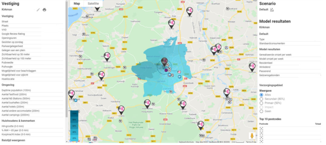 Bij de data-gedreven locatiestrategie wordt er een omzetvoorspelling gedaan op basis van harde interne en externe data. Een geavanceerd rekenmodel combineert onder andere de impact van locatie- en omgevingsfactoren met reisafstanden en sociaal-demografische data. Die data en de juiste analysetools bepalen de meest doorslaggevende combinatie van factoren. Met deze data kunnen ook allerlei scenario’s gemaakt worden en die verschillende scenario’s geven een zeer accuraat beeld van de toekomstige werkelijkheid.