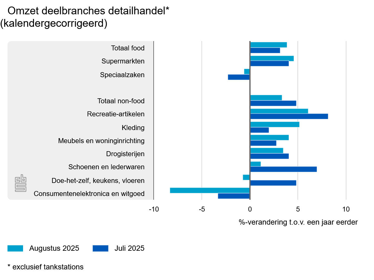 Bron en meer informatie: www.cbs.nl/nl-nl/nieuws/2025/40/detailhandel-zet-bijna-4-procent-meer-om-in-augustus
