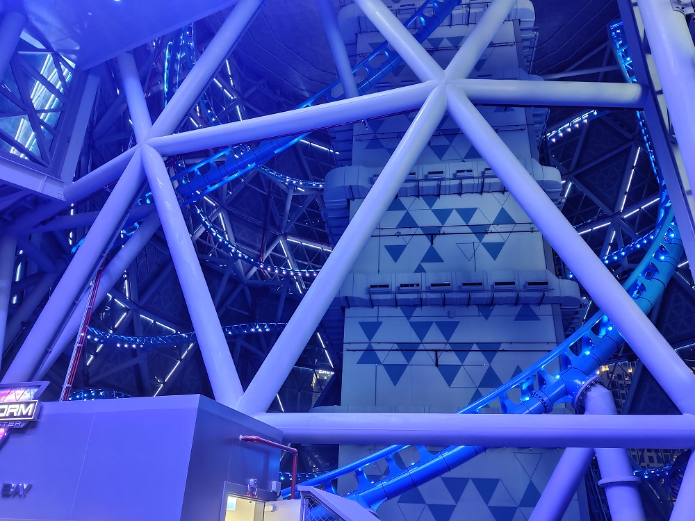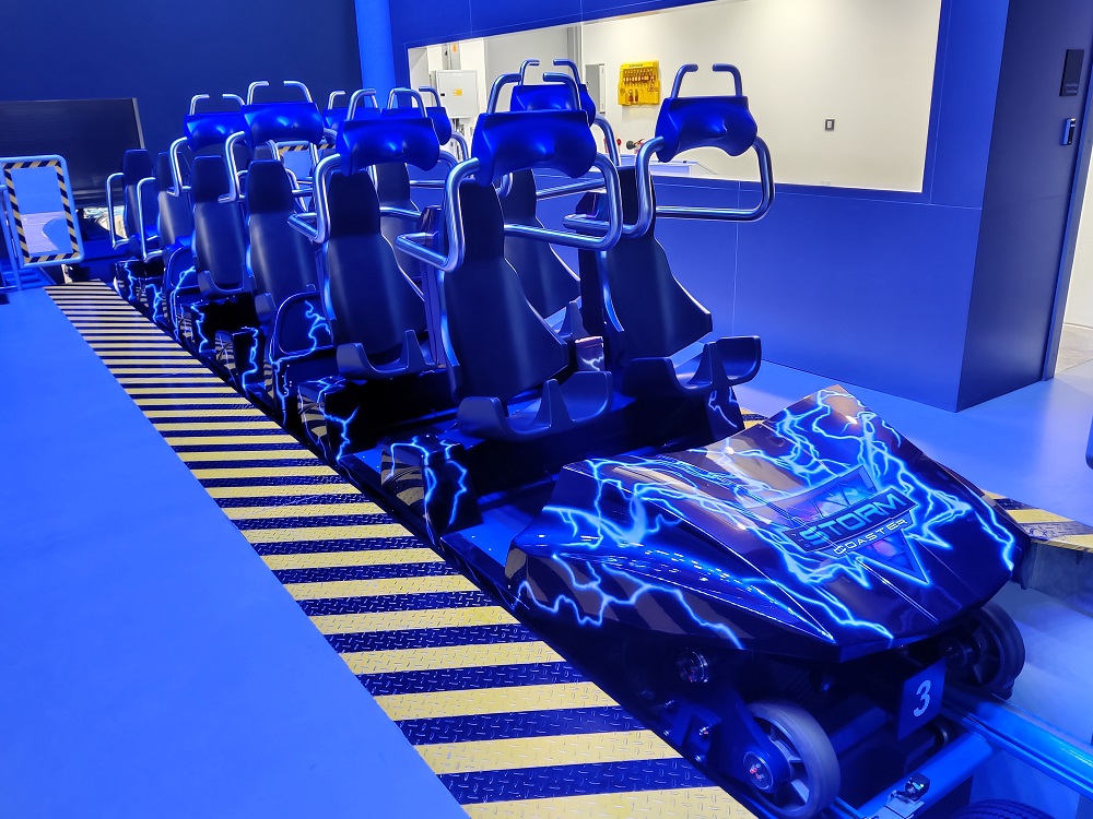 Aan de andere kant van de stad ligt de nieuwere Dubai Hills Mall; Gebouwd door Emaar en geopend in 2022. Ook hier is genoeg ruimte voor retailtainment met een grote bioscoop, openlucht theater en verscheidene kleinere FECs. Eén daarvan is een tweede vestiging van Play DXB. Deze vestiging is een stuk kleiner dan die in de Dubai Mall maar wel verbonden met een grote glazen toren van 50 meter hoog, net buiten de Mall. In deze toren staat een van de grootste indoor achtbanen van Dubai: Storm Coaster van de Liechtensteinse fabrikant Intamin Amusement Rides. De 670 meter lange baan bevat een unieke verticale lancering, 2 inversies en haalt een topsnelheid van 77 kilometer per uur. Daarmee is het de meest extreme Mall-achtbaan van het land.