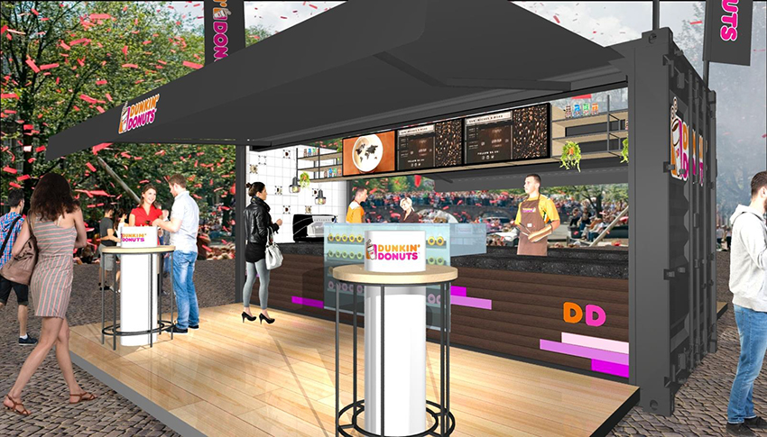 Op 26 en 27 april, Koningsnacht en -dag, is de rijdende Dunkin’ Donuts store op het Stadhuisplein in Almere te vinden. Tevens komt zij naar het Bevrijdingsfestival Flevoland op 5 mei. Twee ideale locaties, want de Dunkin’ Donuts Store is geschikt voor elk event en locatie: van muziekfestivals tot aan beurzen of als echte store.