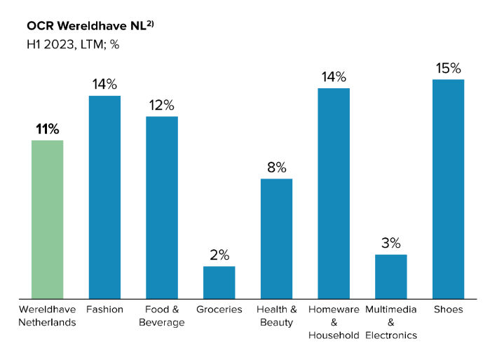 De eerste halfjaarcijfers van 2023 worden op de effectenbeurs AEX goed ontvangen. Beleggers zien dat het bedrijf de hoge inflatie goed heeft kunnen doorberekenen in de huren, waarmee het bedrijfsresultaat op orde blijft. Uit de bijlagen bij het rapport is zichtbaar welke segmenten in retail het best presteren. Dat was het afgelopen half jaar vooral de schoenenbranche, mode, huishoudelijke artikelen en F&B.