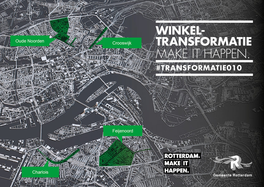 Er zijn vier stadswijken benoemd waar wordt ingezet op transformatie. In het Oude Noorden, Feijenoord, Crooswijk en Charlois, waar sprake is van relatief hogere concentratie winkelleegstand, gaat de gemeente een pakket met maatregelen invoeren om winkeltransformaties te stimuleren. Wethouder Kathmann: ‘Transformatie van leegstaande winkelpanden in niet-winkelgebieden heeft een enorme impact op de leefbaarheid van een wijk. Samen met eigenaren, ontwikkelaars en ondernemers houden we op deze manier aantrekkelijke wijken om te wonen, werken en winkelen. Wij willen op deze manier samen met hen negentig winkeltransformaties gaan realiseren.’