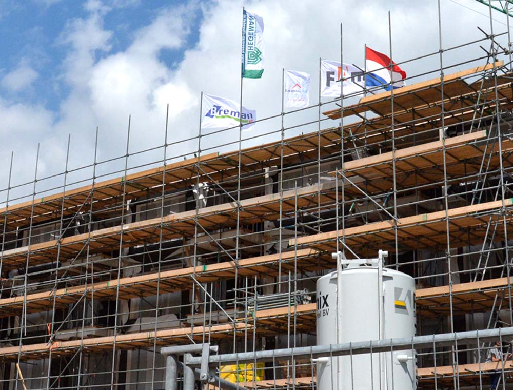 Woensdag 13 mei is het hoogste punt bereikt bij de bouwwerkzaamheden van het wijkwinkelcentrum “Koedijkslanden” te Meppel.