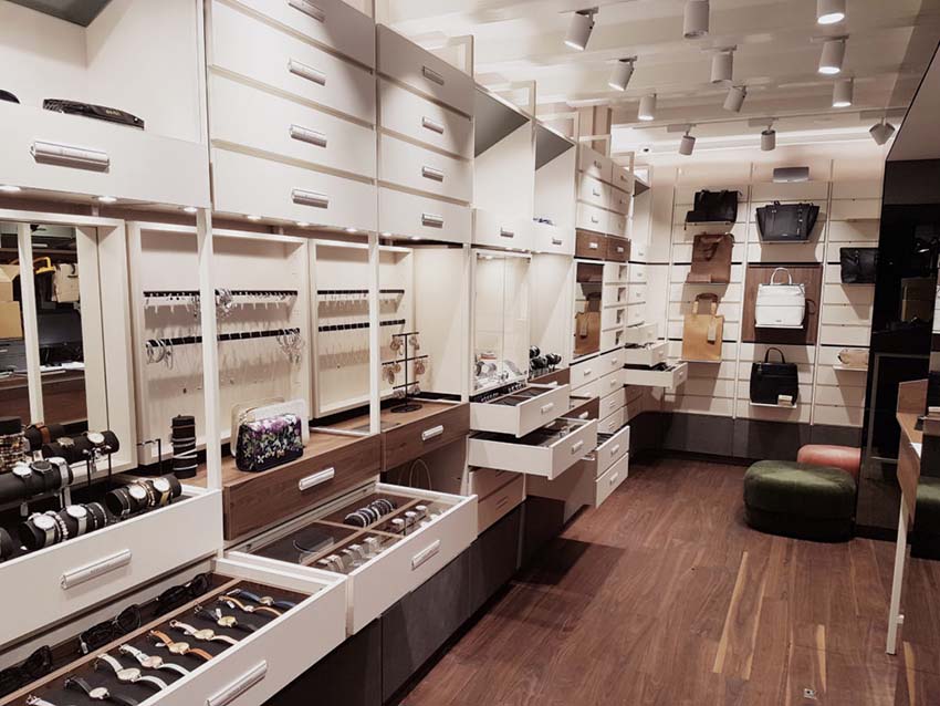 Brandfield heeft op alle kanalen dezelfde doelstelling: mooie styling items bereikbaar maken voor een groot publiek. Dat zie je in de fysieke winkels goed terug, anders dan bij veel juweliers ligt er straks niets achter glas. Het is echt de bedoeling dat mensen de producten pakken, passen en proberen.