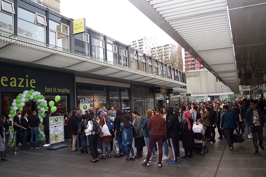 Fast & healthy food keten eazie opende dinsdag 4 april een nieuwe vestiging aan de Korte Lijnbaan te Rotterdam. Speciaal voor deze grand opening zijn maar liefst 500 gratis healthy wokmaaltijden uitgedeeld. Ondernemer Hung verteld: “We zochten naar een manier om de opening samen met onze eazie fans te vieren. Zo ontstond het idee om gratis wokmaaltijden weg te geven”.