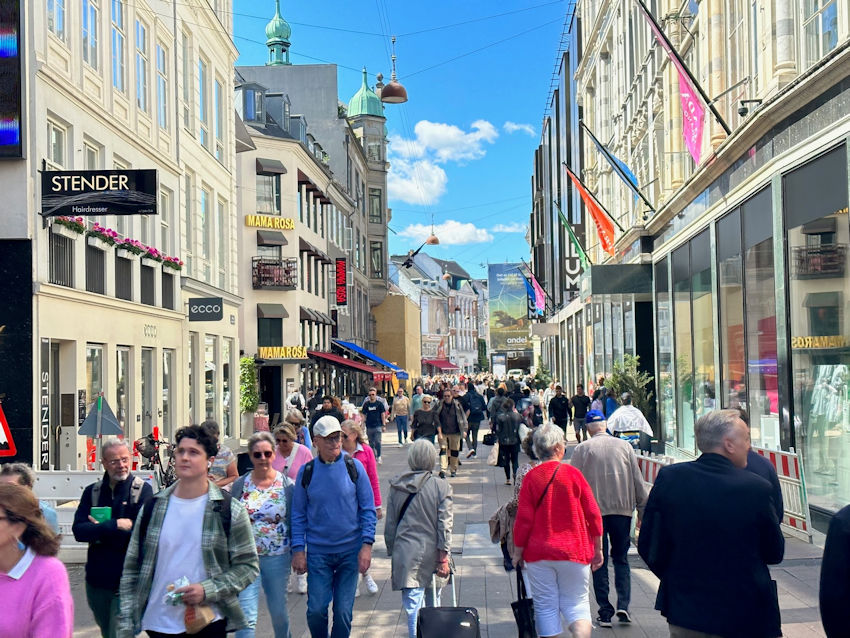 Ole nam ons vervolgens mee op een rondleiding door de belangrijkste winkelstraten in de binnenstad van Kopenhagen. De centrale as wordt gevormd door Strøget, een van de langste winkelstraten van Europa, een verzamelnaam voor de straten Østergade, Amagertov, Vimmelskaftet, Nygade en Frederikbergsgade, die samen Strøget vormen. Prachtig kernwinkelgebied. Mooie panden. Heerlijk flaneren in een vrijwel ongeschonden omgeving van historische bebouwing. Vrijwel geen leegstand. En de winkels? Alles zit door elkaar, op zich vrij apart. Van discount tot ‘high end’ en alles ertussenin.