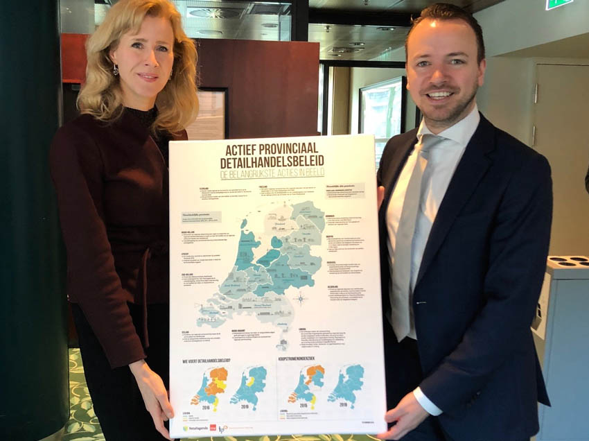 Mona Keijzer ontvangt landkaart met detailhandelsbeleid provincies