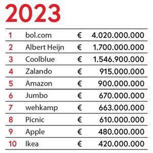 De redactie van e-commerce vakblad Twinkle rangschikt jaarlijks de grootste online verkopers in Nederland, in samenwerking met het Centre voor Market Insights (CMI) van de Hogeschool van Amsterdam. De top-10 grootste webwinkels in ons land is als volgt: