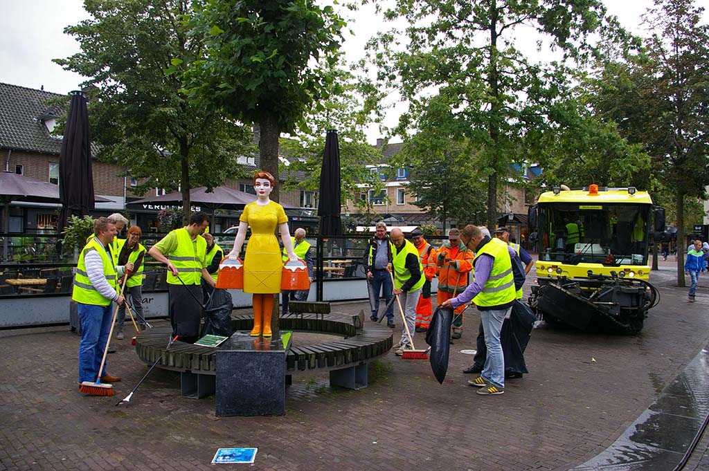 De schoonmaakploeg van de gemeente Huizen (NH) beleefde een bijzondere ervaring toen zij vandaag in het Hart van Huizen aan het werk wilde gaan. De schoonmakers werden opgewacht door de ondernemers van het centrum, die gewapend met stoffer en blik, bezems en grijpers samen met hen aan de slag gingen om het winkelgebied symbolisch een grote schoonmaakbeurt te geven. De ondernemers wilden hiermee laten zien hoe trots zij zijn op hun schone centrum. In het Hart van Huizen is de BIZ (Bedrijven Investerings Zone) van kracht en wordt er intensief samengewerkt op het gebied van schoon, veiligheid en promotie.