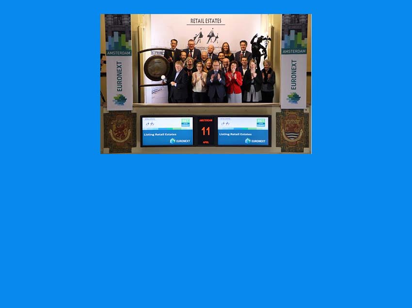 (origineel Engelstalig persbericht) Retail Estates (ticker symbol: RET), a leading real estate company specialised in out-of-town retail real estate, began trading on Euronext Amsterdam today. Their listing on Euronext Amsterdam is in addition to its listing on their home market on Euronext Brussels, since 1998.