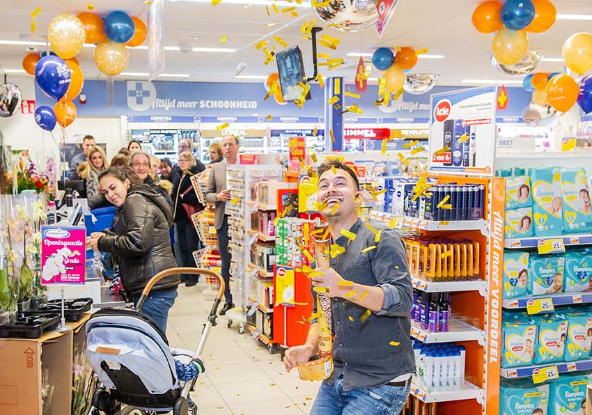 Trekpleister opende vandaag op feestelijke wijze haar 200ste winkel aan De Meent 14 in Hilversum. Om deze bijzondere mijlpaal te vieren, mocht de 200ste klant een minuut lang gratis sinterklaasinkopen doen. Bovendien was niemand minder dan de Goedheiligman zelf in de winkel aanwezig om uit handen van filiaalmanager Marc Frijn een cheque van 1.000 euro te ontvangen. Met dit bedrag helpt Trekpleister Stichting Het Vergeten Kind om zoveel mogelijk wensen uit te laten komen.
