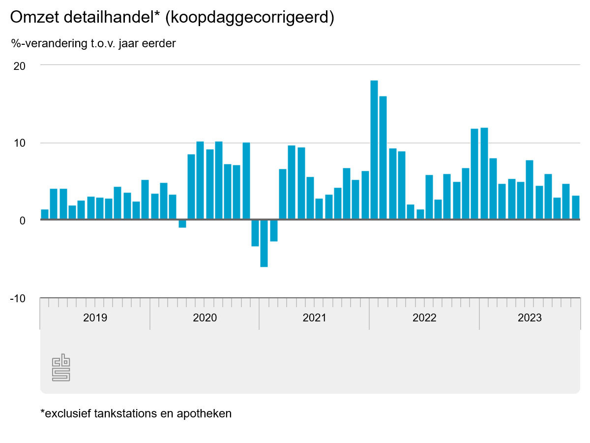 De omzetcijfers zijn gecorrigeerd voor de samenstelling van koopdagen in november. Op sommige dagen van de week wordt meer verkocht dan op andere dagen. Zonder deze correctie was de omzet van de detailhandel 3,7 procent hoger dan in november 2022.