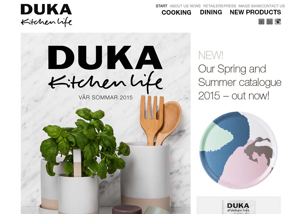De collectie van Duka bestaat onder meer uit glaswaren, servies, bestek, potten en pannen, huishoudbenodigdheden, textiel en accessoires. Met deze nieuwe formule wil Duka inspelen op de toenemende vraag naar keuken- en kookartikelen en de populariteit van Scandinavisch design. De producten zijn geselecteerd op basis van functionaliteit, kwaliteit en betaalbaarheid. Duka bestaat al ruim 50 jaar en heeft meer dan 50 winkels in Scandinavië en Polen.