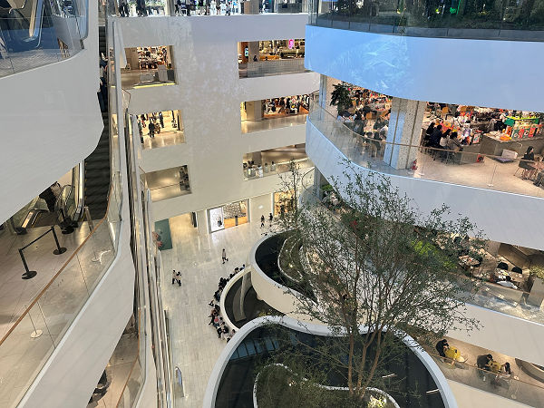 Gaan we verder naar boven, dan treffen we hippe en vooral ook prijzige formules. In het bovenste deel van het centrum bevindt zich een enorme binnentuin, de ‘Sounds Forest’ van zo’n 1.000 m2. De bovenste etage vormt dan ook letterlijk en figuurlijk het hoogtepunt van deze mall. Ook is er een twaalf meter hoge waterval. De grootsheid van dit centrum is overweldigend en deze mall vormt daarmee de perfecte afsluiting van een fantastische reis.