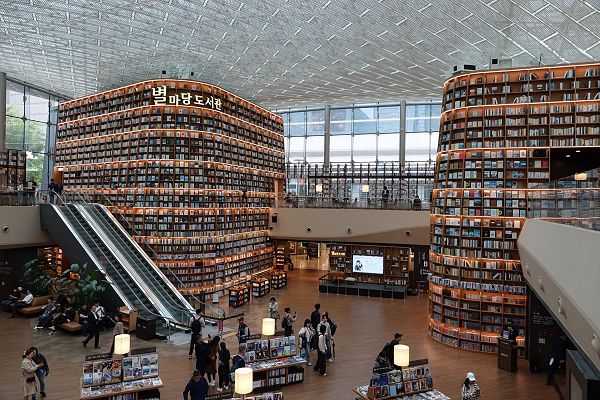 Dan de Starfield Coex Mall in combinatie met de Parnas mall. Wat ons betreft de minste van het stel. Lage plafonds. Onduidelijke routing. En hoewel er veel bezoekers komen, is de omzet een fractie van die van Lotte World Mall. Maar de ‘minste’ hoeft niet te betekenen dat het niet de moeite waard is. Het is een uitstekend winkelgebied naar onze maatstaven. Wat verder in het oog springt, is de bibliotheek. Die is de mooiste ter wereld (zie foto). Zonder twijfel.